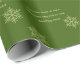 Add your custom message or text to this green snowflake wrapping paper. Great for winter and the Christmas season. Use for business packaging, gifts, and more. Use the template to create your custom green snowflake wrapping paper.