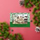 White and green damask pattern, your greeting, names and your photo bordered in real gold, silver or rose gold are featured on these holiday photo cards. Select Matte for heaviest paper and High Definition for best photo quality. Be sure to double-check your order before adding it to your cart as what you see on the screen is what will be printed. The Live Design Service can help you with your design layout if needed.