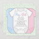 Adorable damas vert menthe avec chemise rose, bleu & blanc bébé sexe révèlent des invitations à la douche. Ce mignon sexe damassé vert révéler l'invitation de baby shower est facile à customiser en ajoutant vos détails à l'avant et à l'arrière en choisissant simplement le bouton "Customiser!" pour commencer à ajouter les détails de votre événement, le style de police, la taille et la couleur de la police et le libellé. Veuillez noter que tous les modèles d'invitation que vous trouverez sur Zazzle sont des graphiques imprimés sans bijoux, arcs, surélevés, gaufrés, ou des pièces ou pièces ajoutées.
