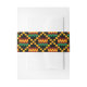 Belly invitation bands with green, dark red, and yellow gold on black Kente Cloth. Customizable. Classic and chic, the perfect belly invitation bands for your wedding invitations.
