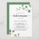 This green delight eucalyptus first communion invitation is perfect for a simple religious event. The design features watercolor hand-drawn elegant botanical eucalyptus branches and leaves.