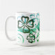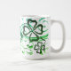 A green diamond gemstone is the centerpiece of this mug with intricate designs and clovers.trendy and stylish
