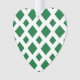 A bold, geometric pattern of large and small green diamonds on a white background. The white forms a lattice which separates the diamond shapes.