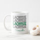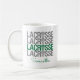 Bold letters spell out the word "LACROSSE" with the "O" replaced by a basket. The slightly distressed design makes a great personalized gift for a player, coach, team or fan. Available in red, orange, yellow, purple, green, blue, grey, black, forest green, navy, maroon, burnt orange, gold and powder blue. Matching products available.