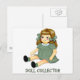 Precious rag doll dressed in green with the words, "Doll Collector".