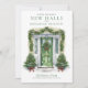 We're decking new halls for the Holidays Card. Christmas Moving Announcement photo Card. Favorite family photo on the back. Design features a watercolor green door decorated with pine wreaths and trees, snow, and red bows. Holiday we moved and have a new address photo card.