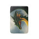 Portrait profile of a green dragon. Blue skies in behind the dragon.