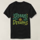 This t-shirt design showcases the phrase "Green Dreams" in a swirling blend of greens and blues. The colours evoke a lush forest with a clear sky, perfect for the eco-conscious dreamer.