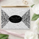 This envelope design features a deep green background beautifully accented with an ornate black damask pattern. The intricate floral and heart motifs create a luxurious and dramatic effect, while the dark tones bring out a sense of sophistication and mystery. The central area is kept clean for customizable text, framed elegantly by the rich ornamental design.