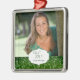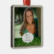 This class of graduation square premium ornament has a green swirl pattern with class of your customizable year written in the middle. You can easily customize the photograph at the top and the name of the graduate at the bottom.