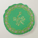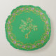 The round throw pillow, measuring 16 inches in diameter and 14 inches in height, features a light green background adorned with an intricate golden design. At its centre, a captivating tree-shaped pattern is presented, enhancing the attractive appeal of the pillow. This elegant combination of colours and design elements creates a striking addition to any décor, seamlessly blending style and sophistication.