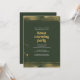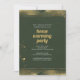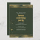 L'effet vert et doré de la feuille de fêtes Invitation est une belle façon d'invitation vos amis et votre famille à votre nouvelle maison. Il comporte un motif géométrique or contre un arrière - plan noir, avec le nom du couple, les détails de l'événement et l'adresse de leur nouvelle maison. Nous aimons la combinaison du moderne et du style traditionnel dans ce design.