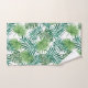 Modern exotic tropical green and watercolor blue leaves seamless pattern over white background
