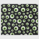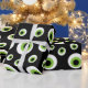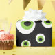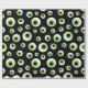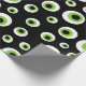 Fun Halloween wrapping paper in black, green, and white featuring a seamless pattern of cartoon eyeballs.