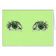 This is a blank greeting card with my drawing of the "Green Eyes" on the front of the card. The card is entirely customizable, so you can change the colours of the entire card and add your own text and images. The only images that cannot be changed are the "Green Eyes" on the front of the card, and my logo and Zazzle's logo on the back. Enjoy!