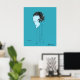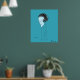 Background is soft medium blue, face is pale blue, hair black/white, eyes are green. This piece would add a pop of colour to any room or office. Original and though provoking. Great gift idea!