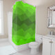 This shower curtain has a geometric design of five shades of green running horizontally.