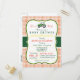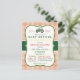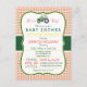 It's a boy! Cute, elegant green farm tractor, country theme baby shower invite on orange retro gingham pattern with vintage formal look. Great for farmer, country theme baby showers. Retro bracket shape invitation.