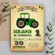 Green Farm Tractor Kids Birthday Party Invitation