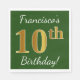 Green, Faux Gold 10th Birthday + Custom Name Napkin
