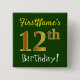 Green, Faux Gold 12th Birthday, With Custom Name 2 Inch Square Button