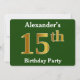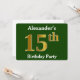 Green, Faux Gold 15th Birthday Party + Custom Name Invitation