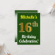 Green, Faux Gold 16th Birthday Celebration + Name Invitation