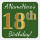 Green, Faux Gold 18th Birthday + Custom Name Square Sticker
