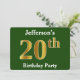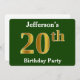 Green, Faux Gold 20th Birthday Party + Custom Name Invitation