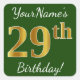 Green, Faux Gold 29th Birthday + Custom Name Square Sticker