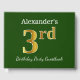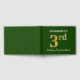 This guest book design features the ordinal number "3rd" with a faux gold-like appearance. It also features a custom name, and a green coloured background. It could be used at a party for somebody celebrating their third birthday. [~Z0000056]