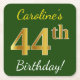 Green, Faux Gold 44th Birthday + Custom Name Square Paper Coaster