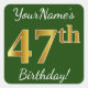 Green, Faux Gold 47th Birthday + Custom Name Square Sticker