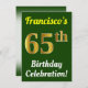 Green, Faux Gold 65th Birthday Celebration + Name Invitation