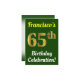 This birthday party invitation design features a message like "Francisco’s 65th Birthday Celebration!", where the name can be personalized, and where the number "65th" has a faux gold-like appearance. It also features a green coloured background. The event details on the back can be customized. It could be used to invite people to somebody’s sixty fifth birthday celebration or birthday party. [~Z0000121]