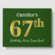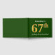 This guest book design features the ordinal number "67th" with a faux/imitation gold-like appearance. It also features a customized name, and a green coloured background. It could be used at a party for somebody celebrating their sixty seventh birthday. [~Z0000056]