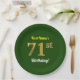Green, Faux Gold 71st Birthday + Custom Name Paper Plate