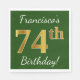Green, Faux Gold 74th Birthday + Custom Name Napkin