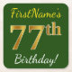 Green, Faux Gold 77th Birthday + Custom Name Square Paper Coaster