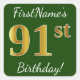 Green, Faux Gold 91st Birthday + Custom Name Square Sticker