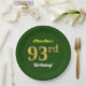 Green, Faux Gold 93rd Birthday + Custom Name Paper Plate