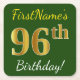 Green, Faux Gold 96th Birthday + Custom Name Square Paper Coaster