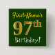Green, Faux Gold 97th Birthday, With Custom Name 2 Inch Square Button