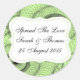 Une idée fabuleuse pour les faveurs de mariage, des petits pots de confiture ou de miel ajouter ces élégants petits étiquettes en vert, noir et blanc motif tourbillonnant "Répandez l'amour" personnalisée avec votre date mariage et vos initiales ou noms.