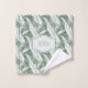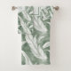 Beautiful light green and gray feathers cover these lovely bathroom towels with a monogrammed center.