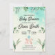 Celebrate the upcoming arrival with this elegant greenery baby shower invitation featuring soft watercolor leaves and adorable bunny illustrations.