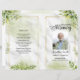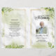 Beautiful and professional Funeral Program template with Green floral Bakcground, easy to edit and print.
