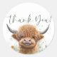 Green floral Highland cow it's a boy Classic Round Sticker