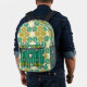 Green floral pattern groovy retro boho printed backpack