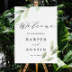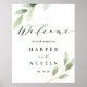 This Wedding Welcome Poster featuring painted watercolor leaves in various shades of green.